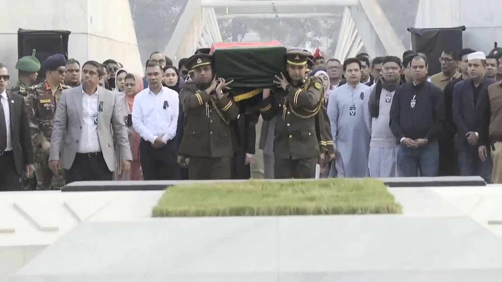 বুধবার বিকেল পাঁচটার কিছু আগে খালেদা জিয়াকে রাষ্ট্রীয় মর্যাদায় দাফন করা হয়।
