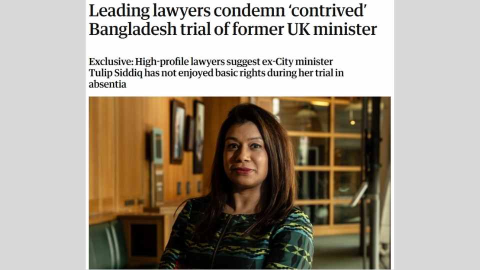 ব্রিটিশ এমপি টিউলিপ সিদ্দিকের বিরুদ্ধে পূর্বাচল নতুন শহর প্রকল্পে প্লট বরাদ্দে জালিয়াতির মামলার বিচার প্রক্রিয়া নিয়ে তীব্র সমালোচনা করেছেন যুক্তরাজ্যের পাঁচজন শীর্ষস্থানীয় আইনজীবী।