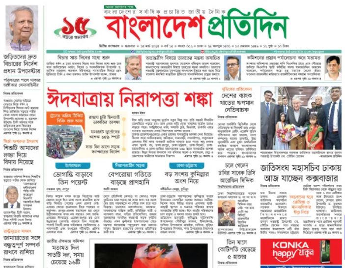 সম্প্রতি চুরি, ছিনতাই, ডাকাতি বেড়ে যাওয়ায় এবার ঈদযাত্রায় মহাসড়কে নিরাপত্তার আশঙ্কা রয়েছে– এমন খবর দিয়ে প্রধান প্রতিবেদন করেছে বাংলাদেশ প্রতিদিন, যা মূলত চারটি ঘটনা নিয়ে প্যাকেজ আয়োজন। ‘ঈদযাত্রায় নিরাপত্তা শঙ্কা’ শিরোনামের প্রতিবেদনে বলা হয়েছে, ঈদে বাড়ি ফেরা মানুষের দুর্ভোগ নতুন কিছু নয়। প্রতি বছরই সীমাহীন ভোগান্তিতে পড়তে হয়। তবে এবার বাড়ি ফেরা মানুষের দুর্ভোগ আরও বাড়তে পারে। সংশ্লিষ্টদের দাবি, সম্প্রতি চুরি, ছিনতাই, ডাকাতি বেড়ে যাওয়ায় মহাসড়কে এবার নিরাপত্তার আশঙ্কা রয়েছে।