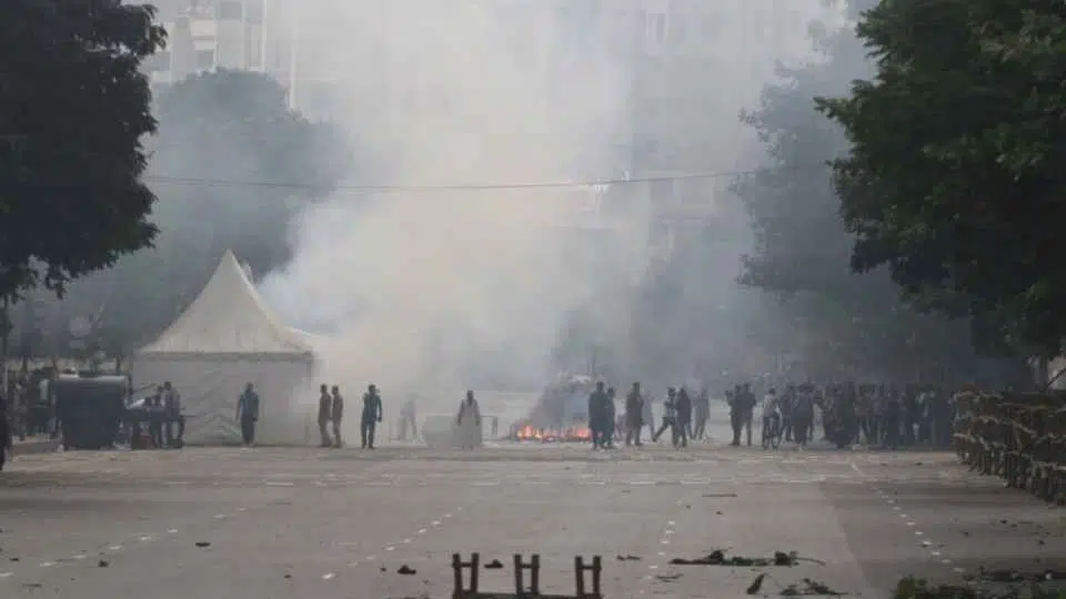 দুপুর ১টার পর পুলিশ তাদের তুলে দিতে গেলে সংঘাত বাধে। সংসদ ভবনের সামনে মানিক মিয়া এভিনিউতে প্রায় দুই ঘণ্টা ধরে পুলিশের সঙ্গে তাদের ধাওয়া-পাল্টা ধাওয়া চলে। পুলিশ লাঠিপেটার পাশাপাশি কাঁদানে গ্যাস ছুড়ে ও সাউন্ড গ্রেনেড ফাটিয়ে তাদের ছ্ত্রভঙ্গ করে দেয়।