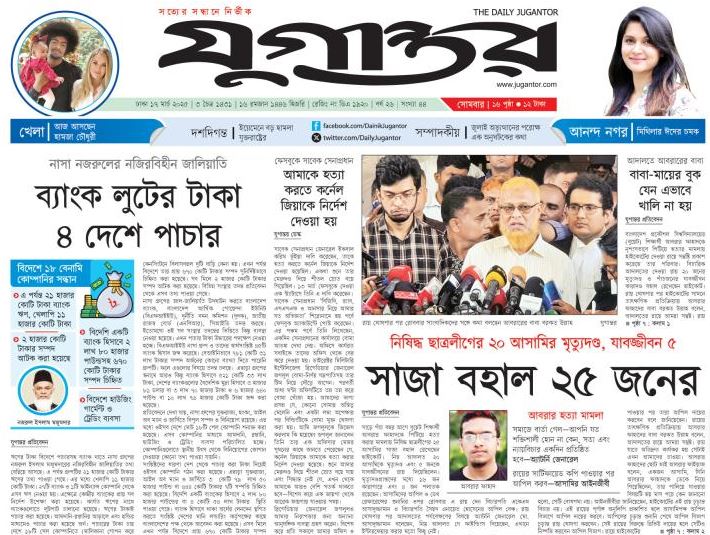 বাংলাদেশ প্রকৌশল বিশ্ববিদ্যালয়ের (বুয়েট) শিক্ষার্থী আবরার হত্যাকাণ্ডে নিম্ন আদালতের দেওয়ার রায় হাইকোর্টে বহাল থাকার খবর দিয়ে প্রধান প্রতিবেদন করেছে যুগান্তরও। ‘সাজা বহাল ২৫ জনের’শিরোনামের প্রতিবেদনে বলা হয়েছে, সাড়ে পাঁচ বছর আগে বুয়েট শিক্ষার্থী আবরার ফাহাদকে পিটিয়ে হত্যা করার মামলায় নিষিদ্ধ ছাত্রলীগের ২৫ আসামির সাজা বহাল রেখেছেন হাইকোর্ট। নিম্ন আদালত ২০ আসামিকে মৃত্যুদণ্ড এবং ৫ জনকে যাবজ্জীবনের রায় দিয়েছিলেন। মৃত্যুদণ্ডপ্রাপ্তদের মধ্যে ১৬ জন কারাগারে এবং ৪ জন পলাতক রয়েছেন। আসামিদের আপিল ও ডেথ রেফারেন্সের শুনানির ওপর রোববার এ রায় দেন বিচারপতি একেএম আসাদুজ্জামান ও বিচারপতি সৈয়দ এনায়েত হোসেনের আপিল বেঞ্চ। রায় ঘোষণার পর আদালতের পর্যবেক্ষণের বিষয়ে অ্যাটর্নি জেনারেল মো. আসাদুজ্জামান বলেছেন, নিম্ন আদালত যে ফাইন্ডিংস দিয়েছেন, এখানে ইন্টারফেয়ার করার মতো কিছু নেই।