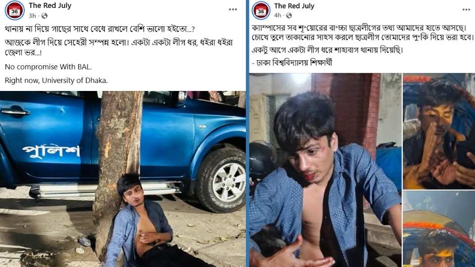 থানার সামনে দুই পা বিছিয়ে একটি গাছে হেলান দেওয়া অবস্থায় আহত ওই শিক্ষার্থীর রক্তাক্ত ছবি ‘দ্য রেড জুলাই’ নামের একটি পেজ থেকে শেয়ার করা হয় সেহরির সময়।