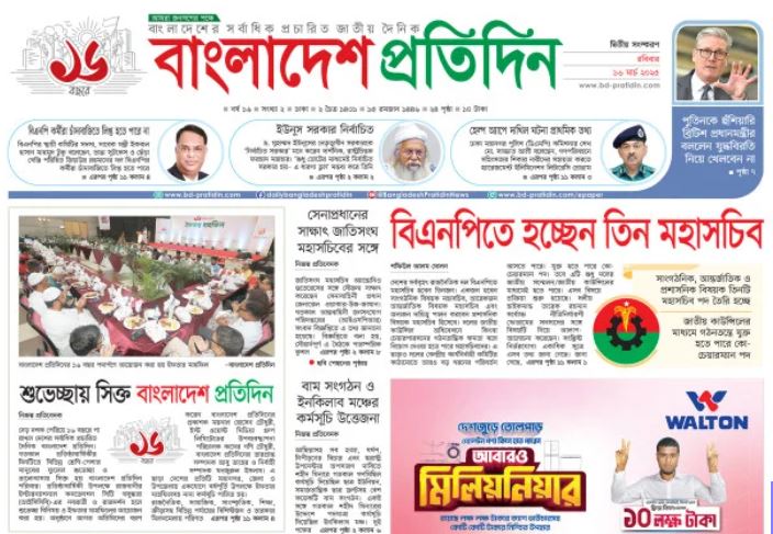 দেশের শীর্ষস্থানীয় রাজনৈতিক দল বিএনপিতে মহাসচিবের তিনটি পদ সৃষ্টি করা হচ্ছে– এমন খবর দিয়ে প্রধান প্রতিবেদন করেছে সংবাদপত্রটি। ‘বিএনপিতে হচ্ছেন তিন মহাসচিব’ শিরোনামের প্রতিবেদনে বলা হয়েছে, দেশের সর্ববৃহৎ রাজনৈতিক দল বিএনপিতে মহাসচিব হবেন তিনজন। একজন হবেন সাংগঠনিক বিষয়ক মহাসচিব, আরেকজন আন্তর্জাতিক বিষয়ক মহাসচিব এবং অন্যজন দায়িত্ব পালন করবেন প্রশাসনিক বিষয়ক মহাসচিব হিসেবে। দলের জাতীয় কাউন্সিল অধিবেশনে কিংবা চেয়ারপারসনের গঠনতান্ত্রিক ক্ষমতা বলে নিয়োগ দেওয়া হতে পারে মহাসচিবদের। এ ছাড়াও দলের কেন্দ্রীয় কার্যনির্বাহী কমিটির কাঠামোতে আরও বড় ধরনের পরিবর্তন আসতে পারে। যুক্ত হতে পারে কো-চেয়ারম্যান পদ। তবে এটি শুধু দলের জাতীয় সম্মেলন/জাতীয় কাউন্সিলের মাধ্যমেই হতে পারে। এসব বিষয়ে প্রক্রিয়া শুরু হয়েছে। দলীয় হাইকমান্ড তারেক রহমান সর্বোচ্চ নীতিনির্ধারণী ফোরামের সদস্যদের সঙ্গে বিষয়টি নিয়ে আলাপ-আলোচনা করেছেন। সংশ্লিষ্ট নির্ভরযোগ্য একাধিক সূত্রে এসব তথ্য জানা গেছে।