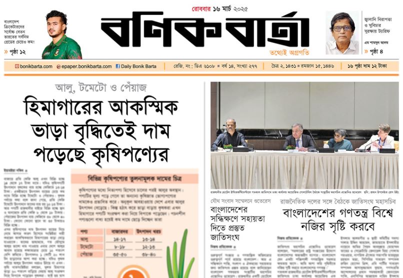 জাতিসংঘ মহাসচিব আন্তোনিও গুতেরেসের বাংলাদেশ সফরে আসা এবং অন্তর্বর্তী সরকার ও রাজনৈতিক দলগুলোর প্রতিনিধিদের সঙ্গে তার বৈঠকের খবর দিয়েই রোববার প্রধান প্রতিবেদন করেছে বেশিরভাগ সংবাদপত্র। এর পাশাপাশি বিএনপিতে সাংগঠনিক পরিবর্তন, ক্ষমতাচ্রুত আওয়ামী লীগের আমলে ঋণ জালিয়াতি, কৃষিপণ্যে দাম উৎপাদন খরচের চেয়ে কমে যাওয়ার কারণ ও দেশের রাজনৈতিক পরিস্থিতির নিয়ে করা সংবাদও গুরুত্বের সঙ্গে ছেপেছে সংবাদপত্রগুলো। এক নজরে দেখে নেওয়া যাক রোববার কোন সংবাদপত্র কোন খবরকে প্রধান শিরোনাম করেছে।